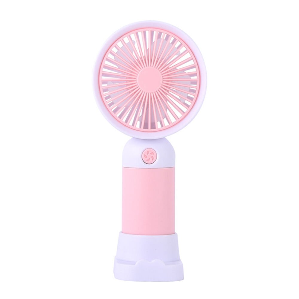 Sevimli Karakter Desenli Sessiz USB Şarjlı Mini Fan Kalemtraşlı, Taşınabilir Masaüstü Fan Pembe