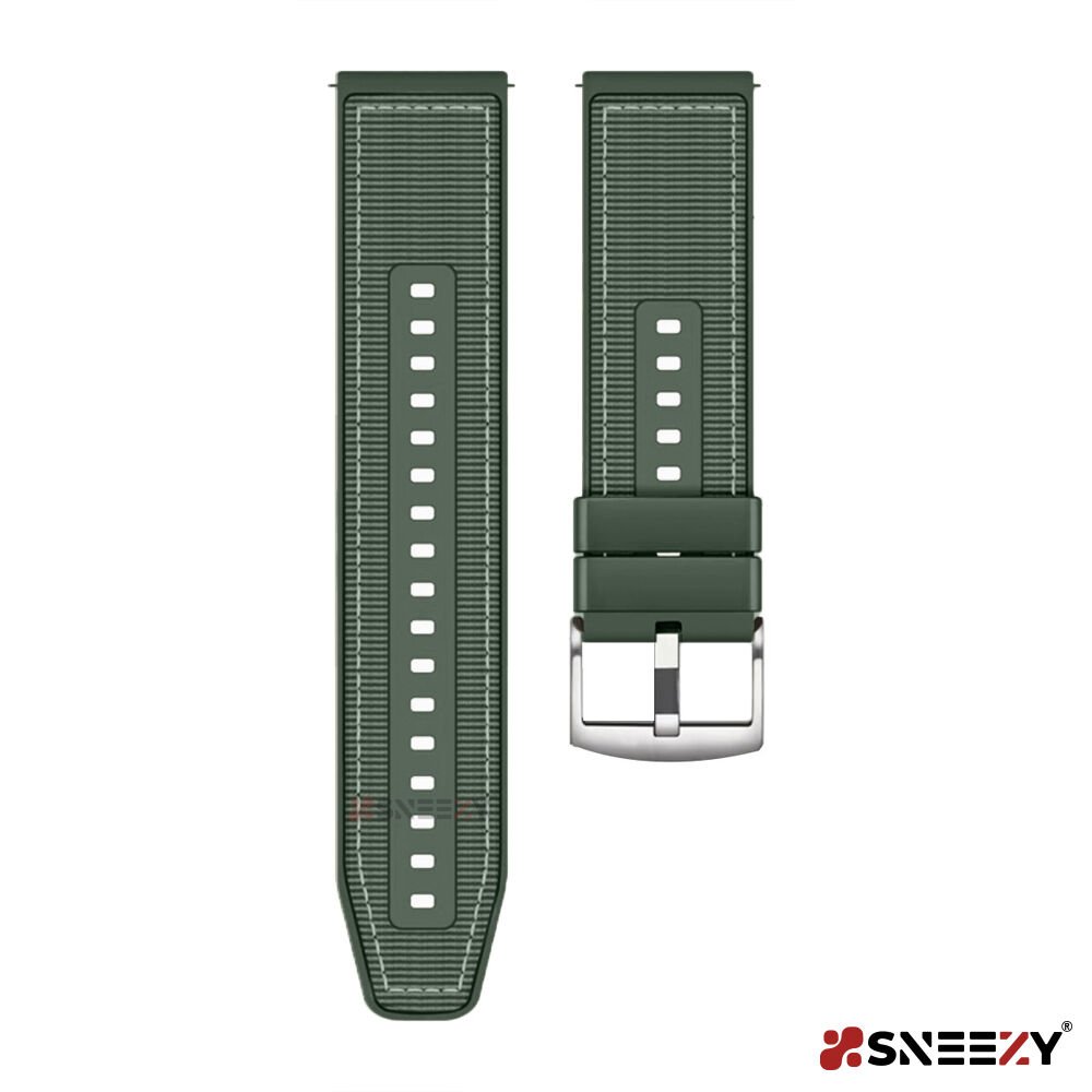 Sneezy Huawei Watch GT 2 Elegant-Classic 42mm Uyumlu 20mm Dikiş Desenli Dokuma Silikon Kordon Haki - Haki