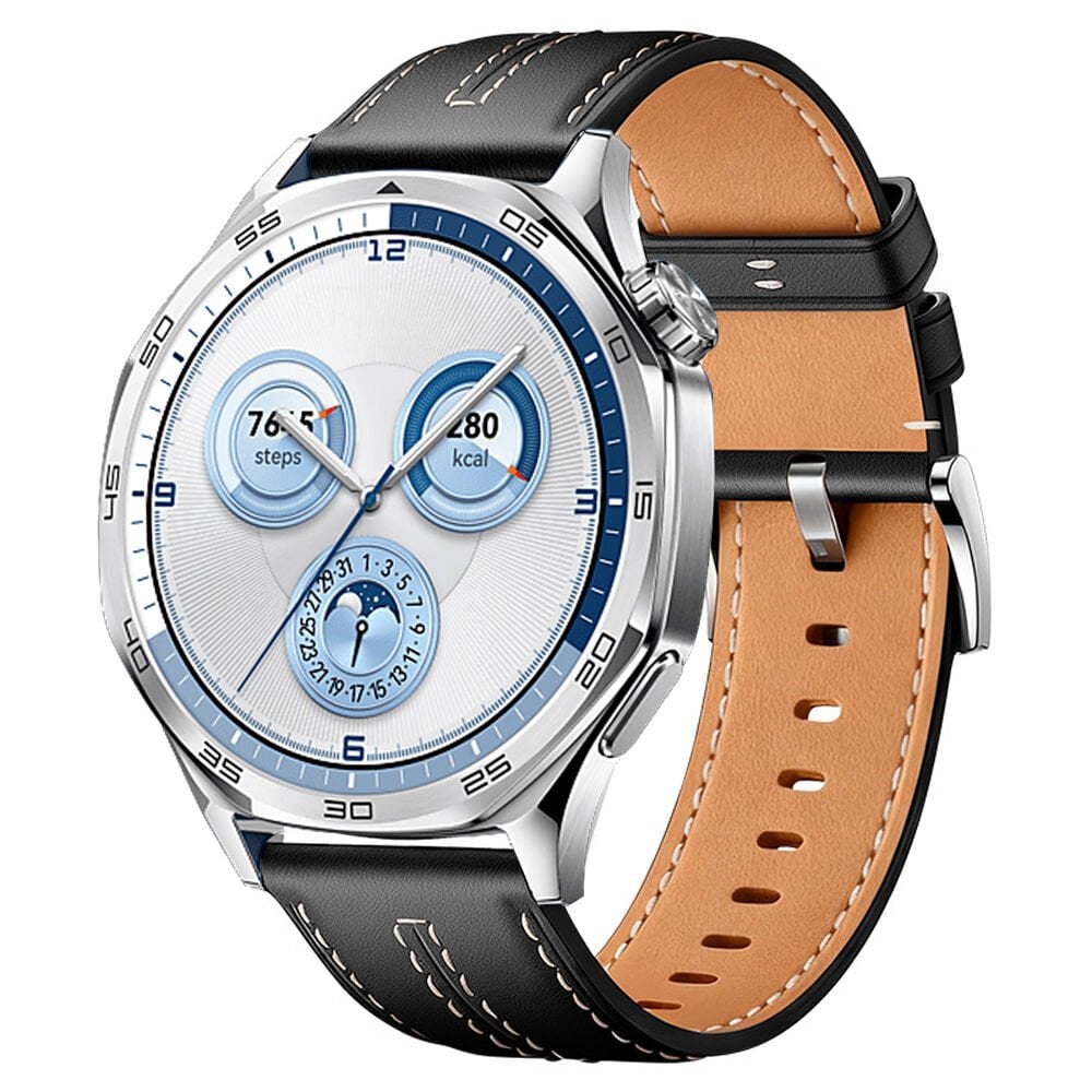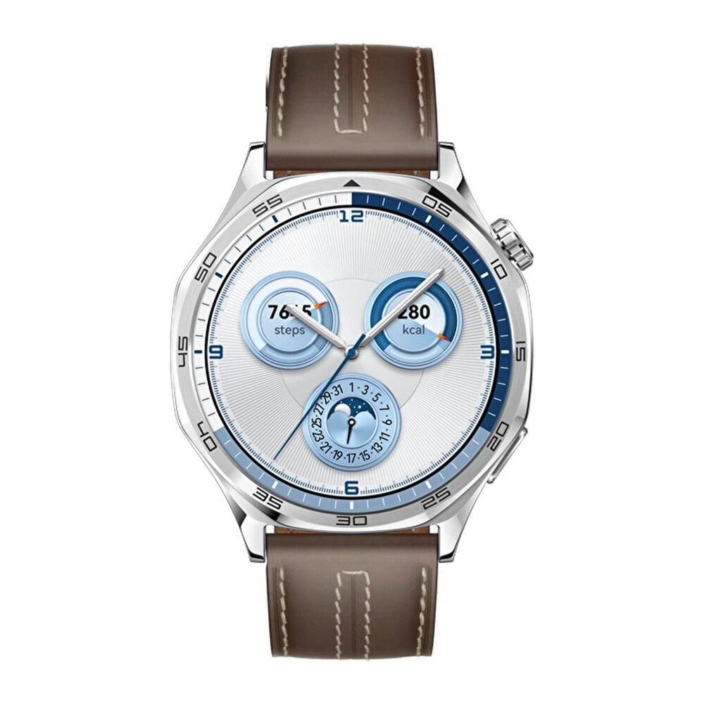 Sneezy Huawei Watch GT5 46mm İle Uyumlu Dikiş Desenli Deri Metal Tokalı Akıllı Saat Kordonu