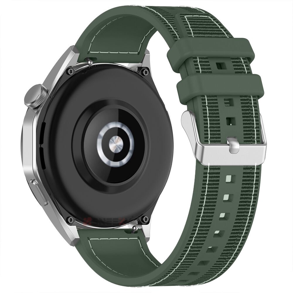 Sneezy Huawei Watch GT6 Pro 46mm İle Uyumlu Metal Tokalı Dikiş Desenli Dokuma Silikon Kordon