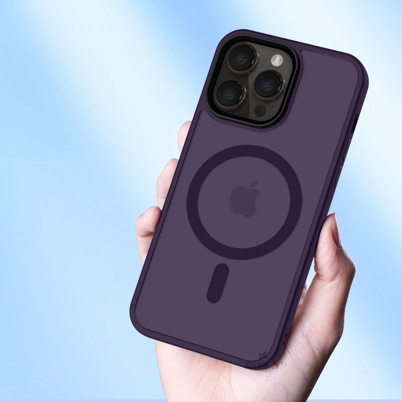 Sneezy İphone 13 Pro İle Uyumlu Magnetic Matte Prism Kapak Mor - Mor