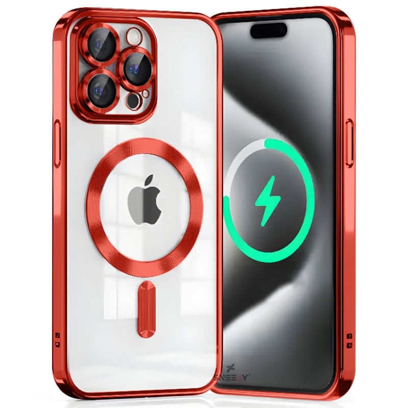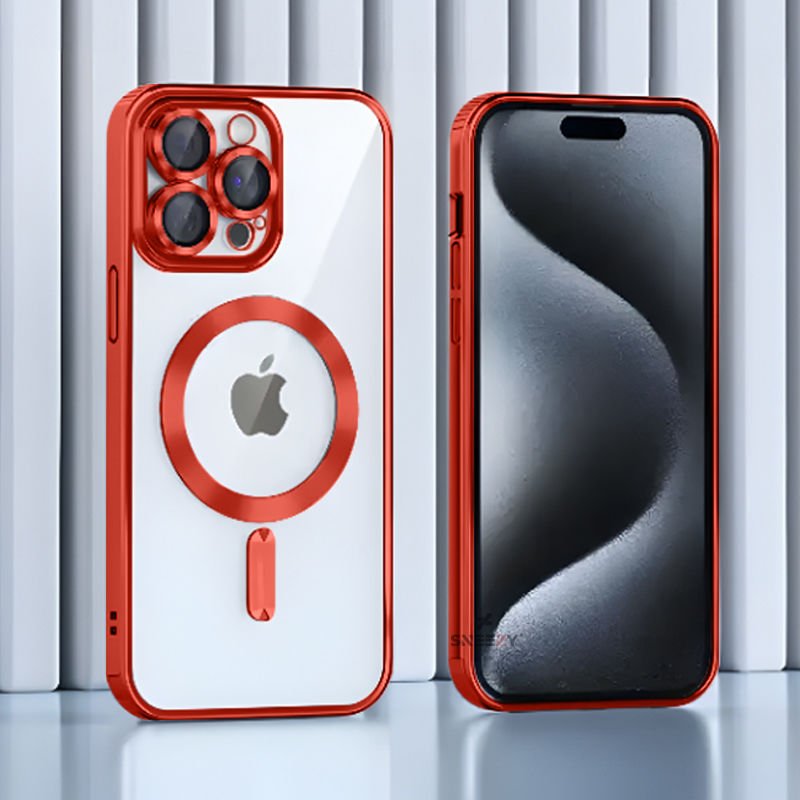 Sneezy İphone 13 Pro İle Uyumlu Reflect Line MagSafe Uyumlu İnce Tasarım Kapak Kırmızı - Kırmızı