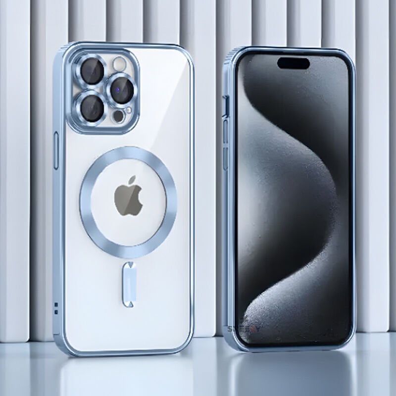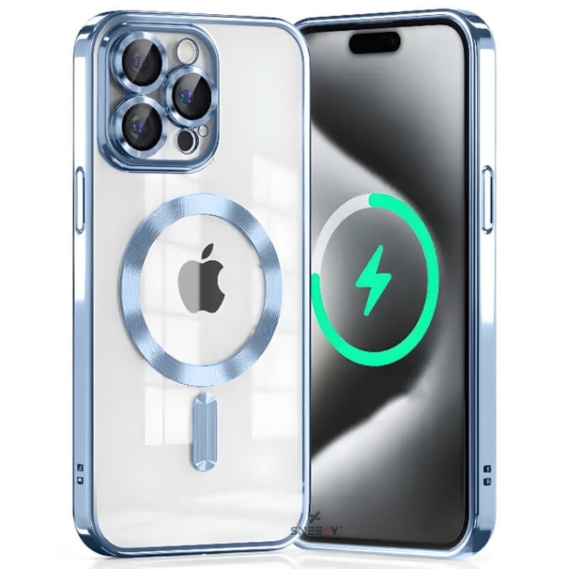 Sneezy İphone 13 Pro İle Uyumlu Reflect Line MagSafe Uyumlu İnce Tasarım Kapak Mavi - Mavi