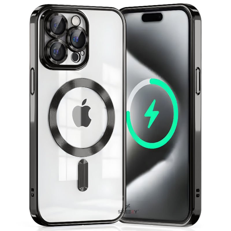 Sneezy İphone 13 Pro Max İle Uyumlu Reflect Line MagSafe Uyumlu İnce Tasarım Kapak Siyah - Siyah