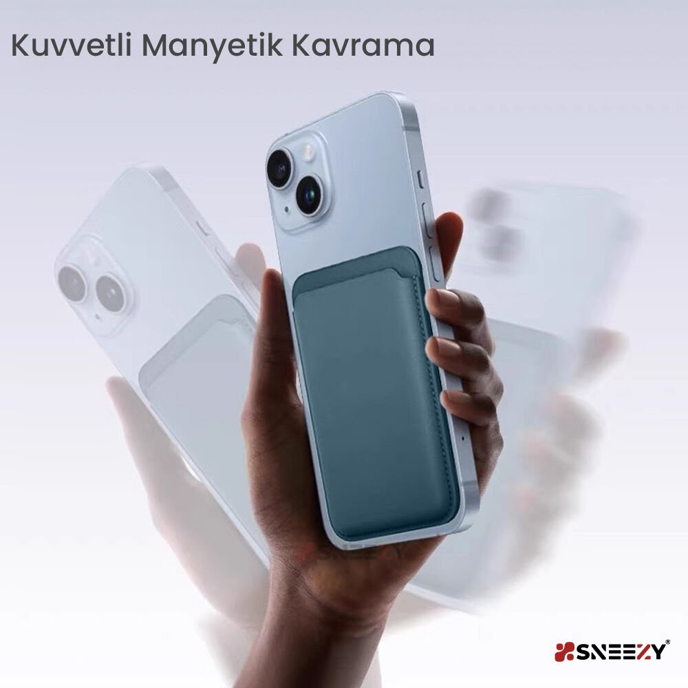 Sneezy İphone 15-15 Plus-15 Pro-15 Pro max Uyumlu Birinci Sınıf Magsafe Cüzdan Magsafe Deri Kartlık Petrol Mavi