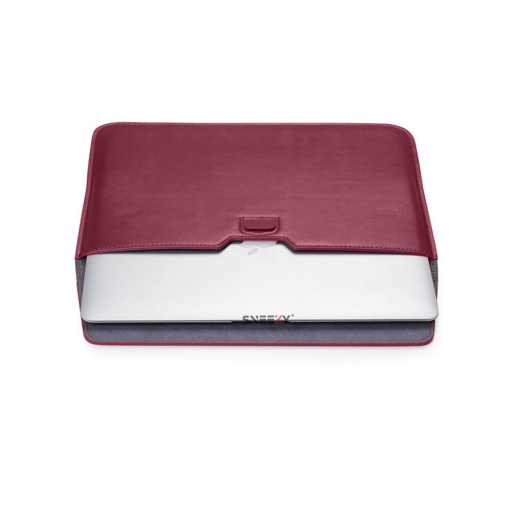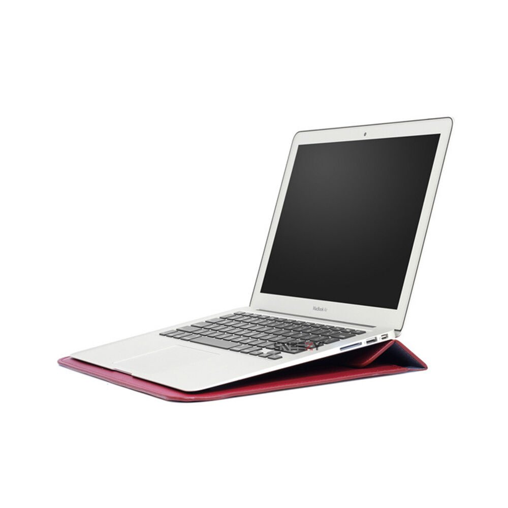 Sneezy Macbook Pro 16 İnç A2141 Uyumlu PortaPivo Standlı Deri Taşıma Çantası Koyu Kırmızı - Koyu Kırmızı