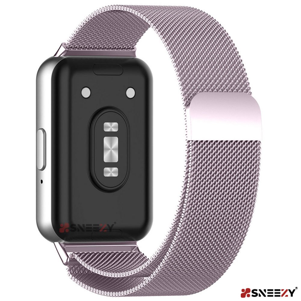 Sneezy Samsung Galaxy Fit 3 İle Uyumlu Woven Wire Tasarım Metal Hasır Kordon Lila - Lila