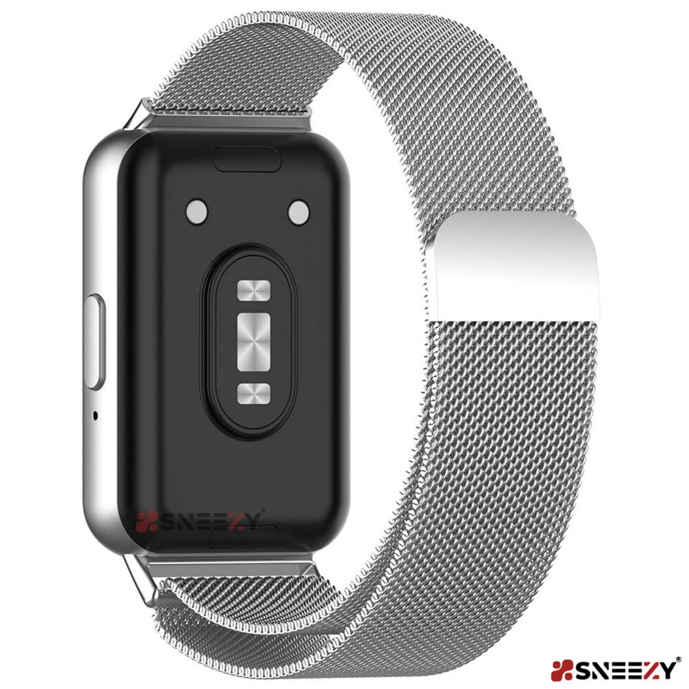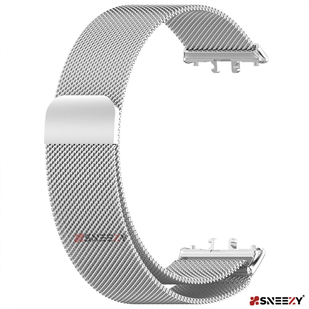 Sneezy Samsung Galaxy Fit 3 İle Uyumlu Woven Wire Tasarım Metal Hasır Kordon Gümüş - Gümüş