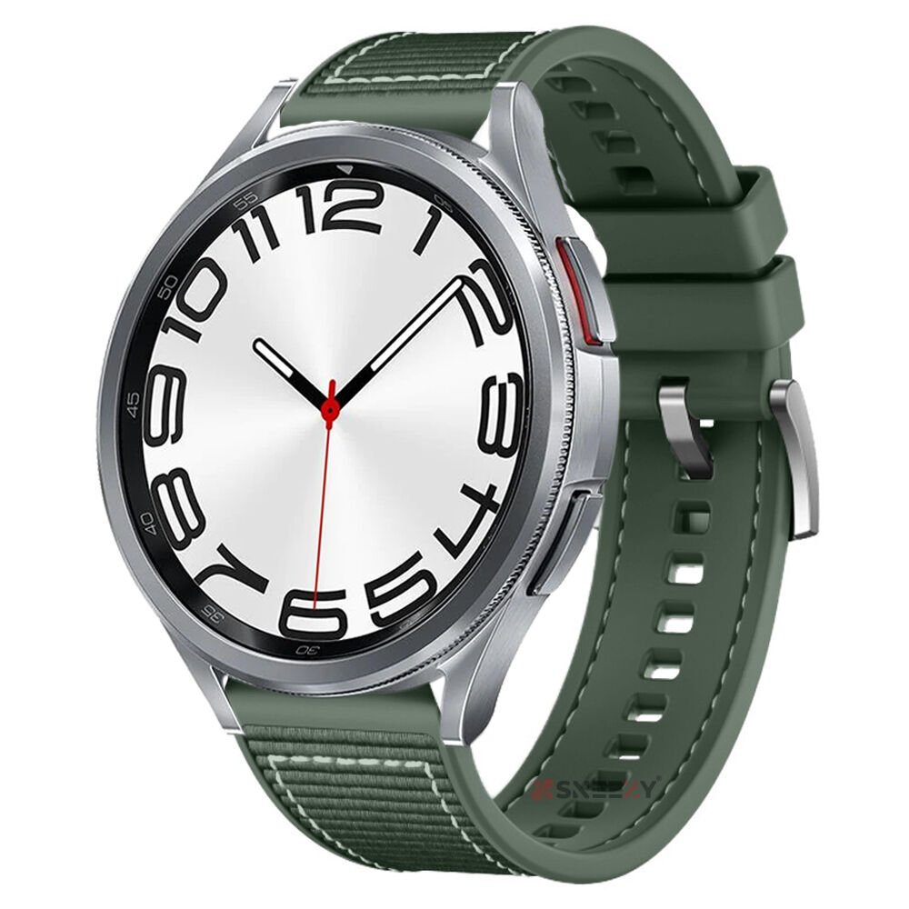 Sneezy Samsung Galaxy Watch 5 40-44mm İle Uyumlu 20mm Dikiş Desenli Dokuma Silikon Kordon Haki - Haki