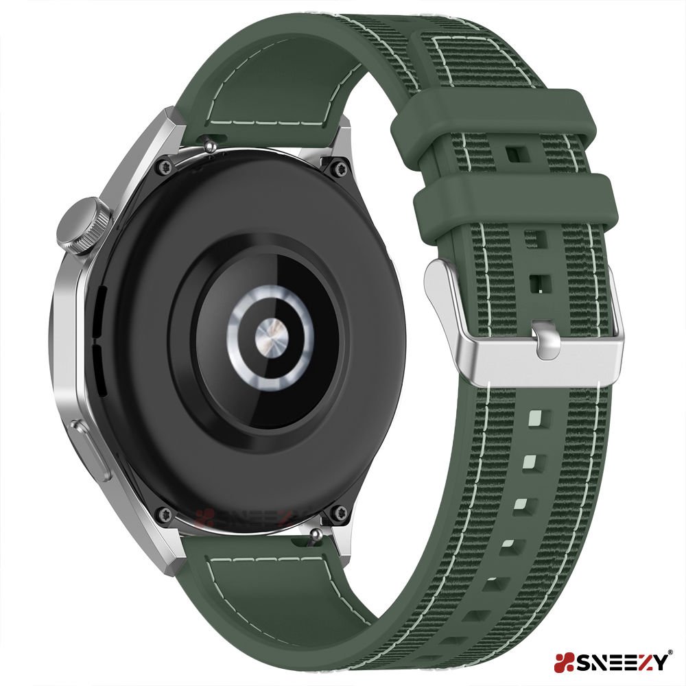 Sneezy Samsung Galaxy Watch Active Active 2 44mm-40mm 20mm Dikiş Desenli Dokuma Silikon Kordon Haki - Haki