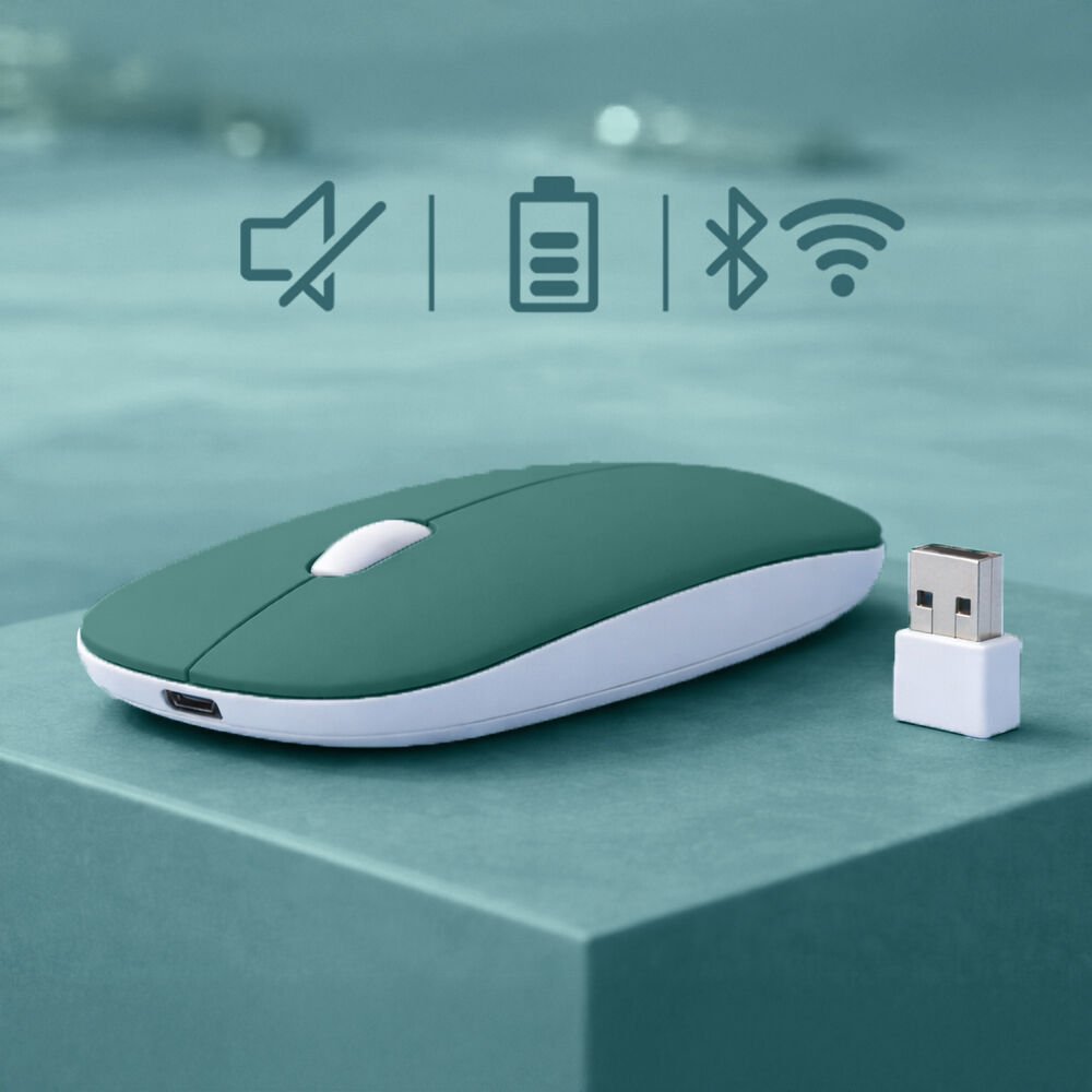 Tablet ve Telefon İçin Bluetooth Mouse iOS Android Uyumlu Şarjlı Batarya USB Dongle ve Kablo Dahil Haki