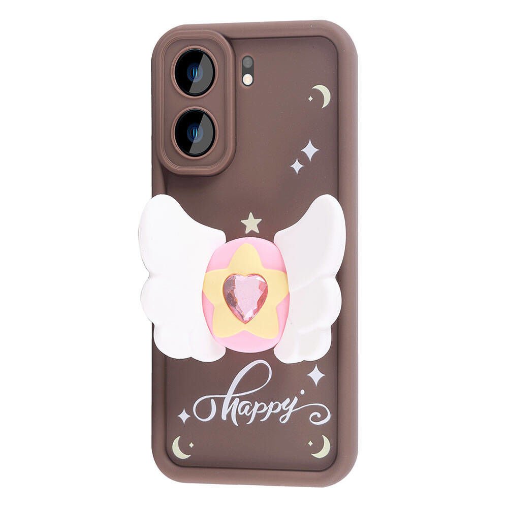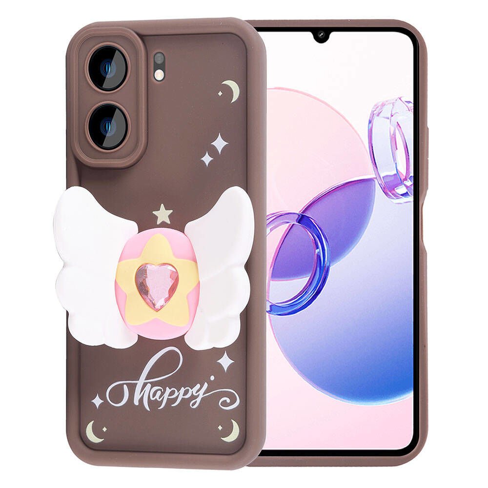 Xiaomi Redmi 13C Kılıf Kamera Korumalı Figür Tasarımlı Glam Kapak Kahverengi